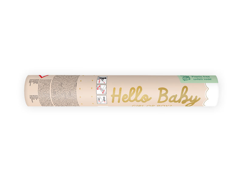 Met een lengte van 20 cm en een bereik van 5 tot 8 meter zorgt dit kanon voor een mooi verspreide reveal. Werkt op luchtdruk (geen vuurwerk), dus veilig en makkelijk in gebruik.