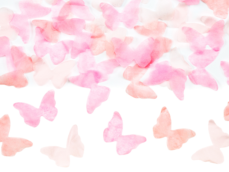 Wil je iets zachter en eleganter dan klassieke confetti? Dit confetti kanon schiet roze papieren vlinders in drie tinten de lucht in. Resultaat: een licht, bijna sprookjesachtig effect.